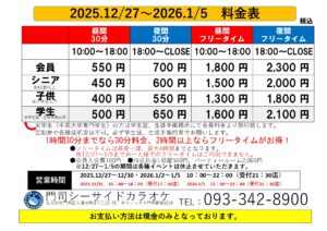 門司シーサイドボウル・シーサイドカラオケの年末年始の特別営業期間に関して下記の通りお知らせ致します。