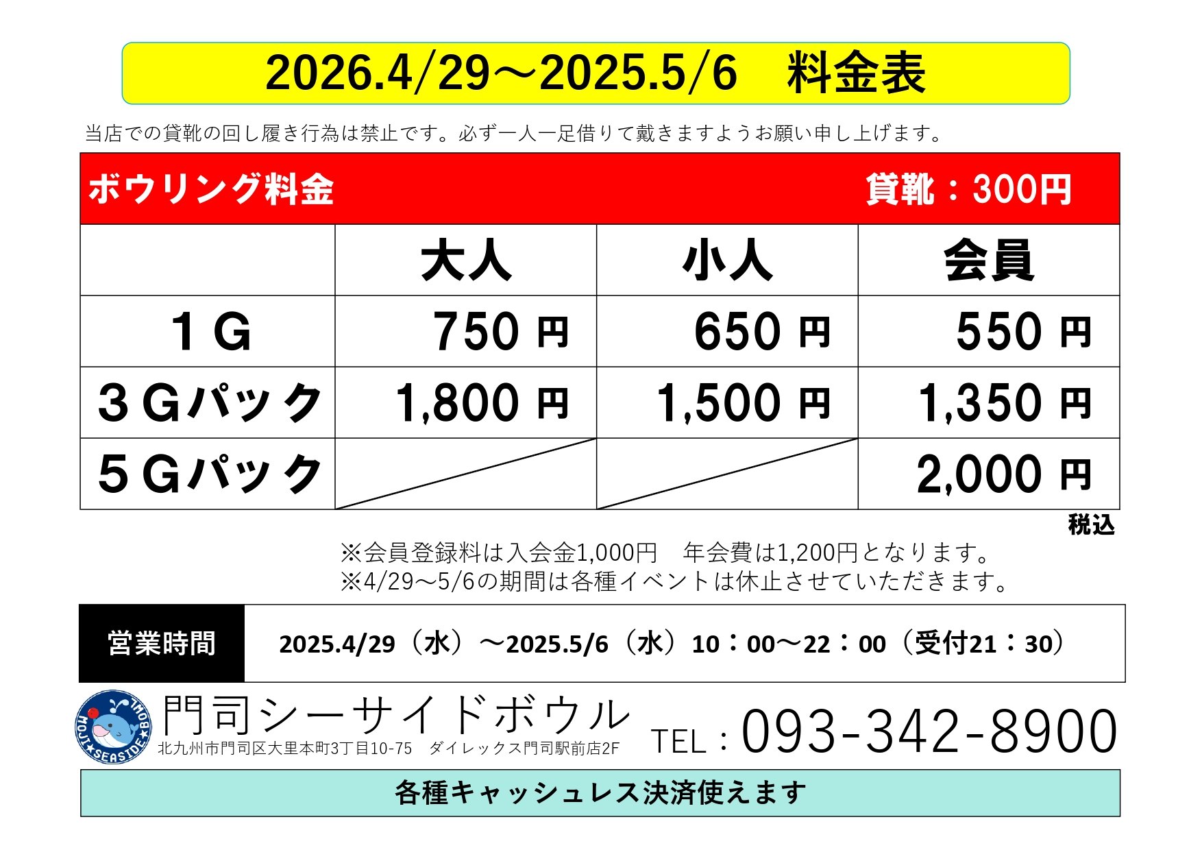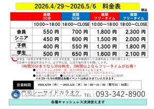 期間中は料金の変更・曜日イベント・月間イベントの休止等通常営業と異なる点がございますのでご注意いただきますようお願い申し上げます。